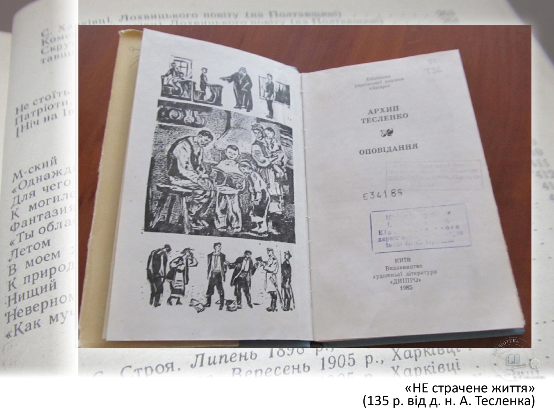 Архип Тесленко починався як художник слова з великого страждання, з розпізнавання зерняток добра в суспільному злі. Особливий інтерес у користувачів викличе неповторний образ Людини найвищої чистоти й саможертовності, який постає зі сторінок віршів, писаних російською мовою, нарисів, п`єс, оповідань і повісті «Страчене життя».