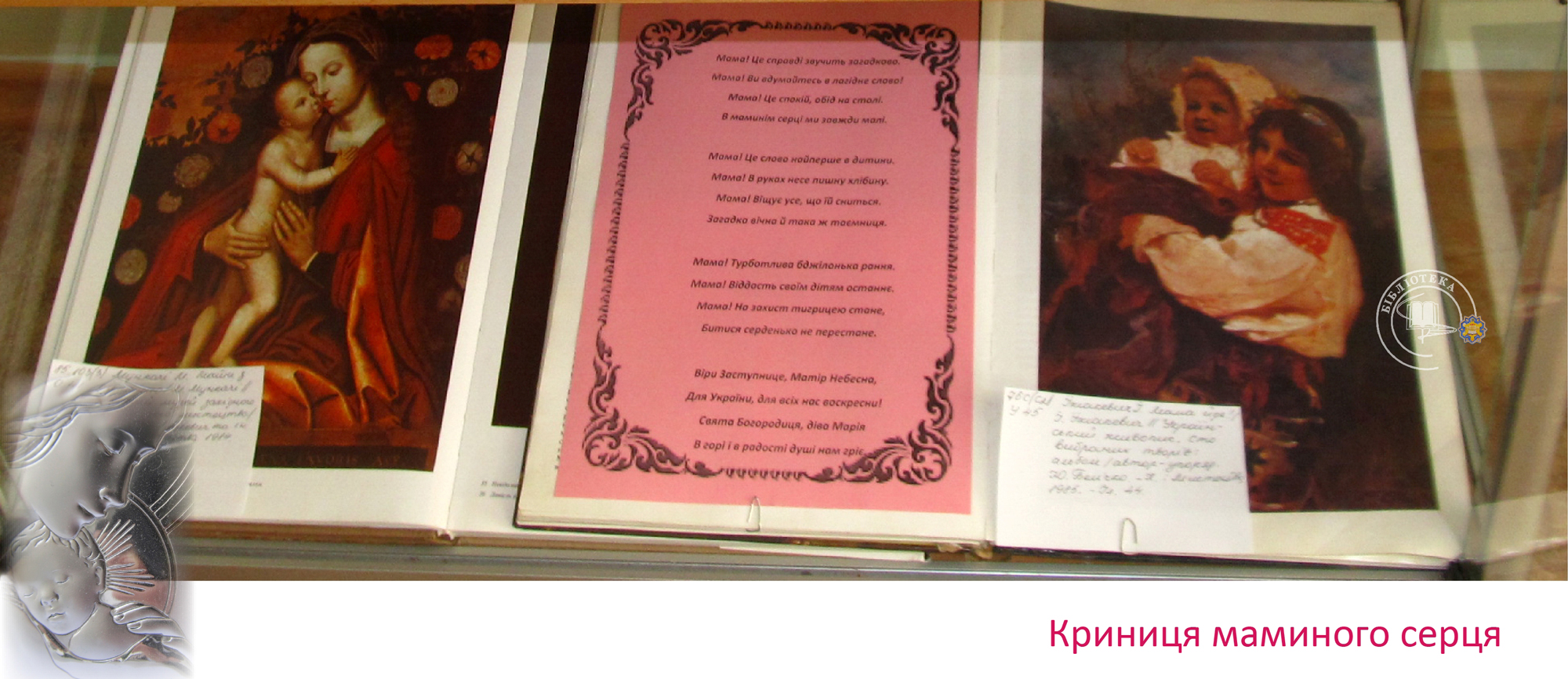 Універсальний читальний зал теж долучився до святкування і підготував виставку «Криниця маминого серця». Відвідайте нашу виставку і не забудьте привітати своїх найрідніших матусь.