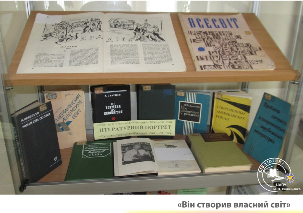 Завітавши на виставку, шановний Читачу, ви отримаєте цілісне уявлення про найважливіші грані художнього слова американського прозаїка…