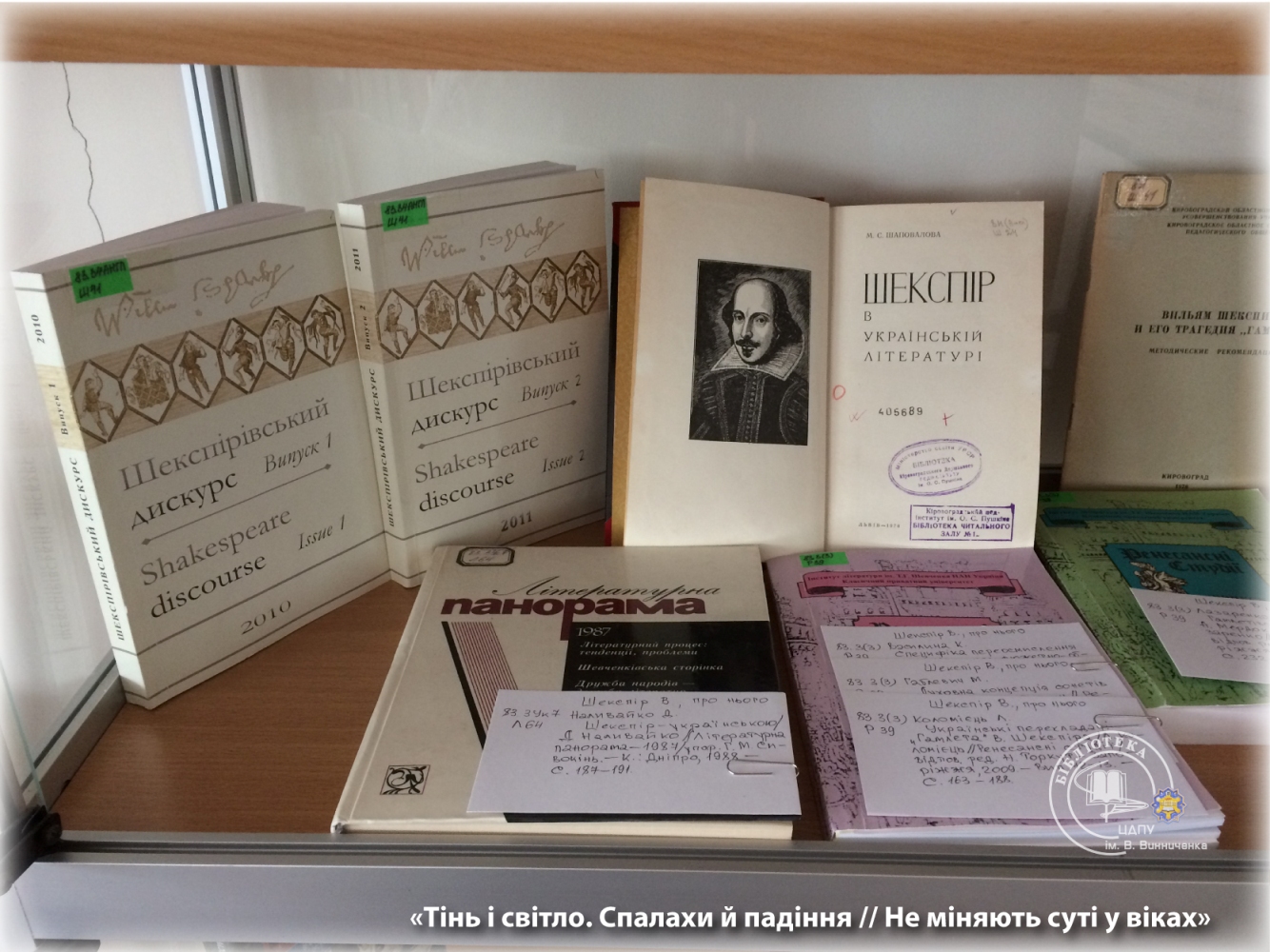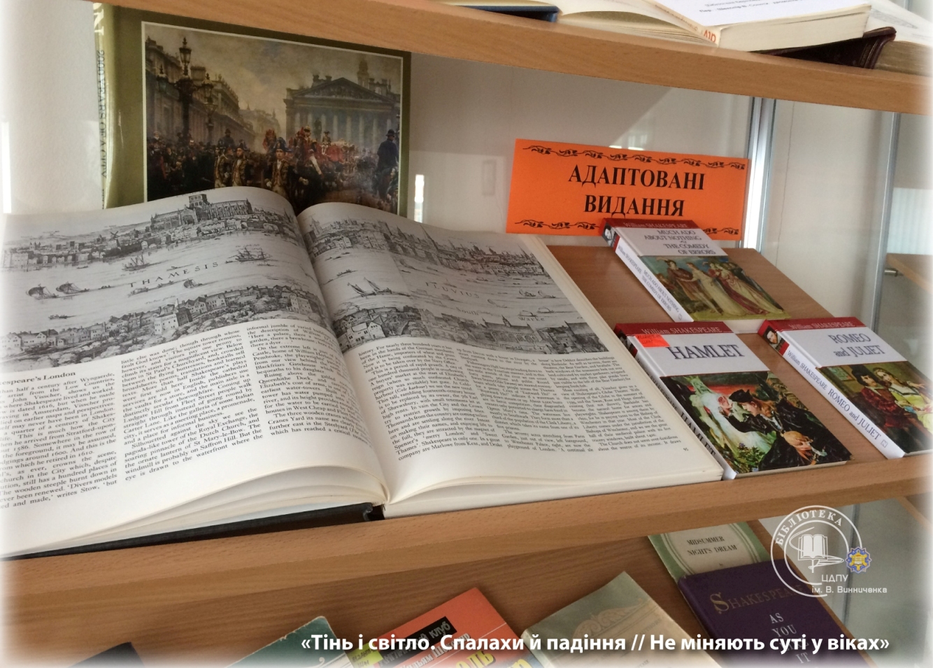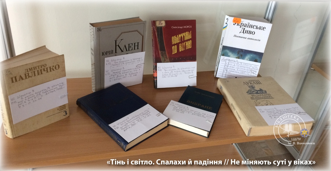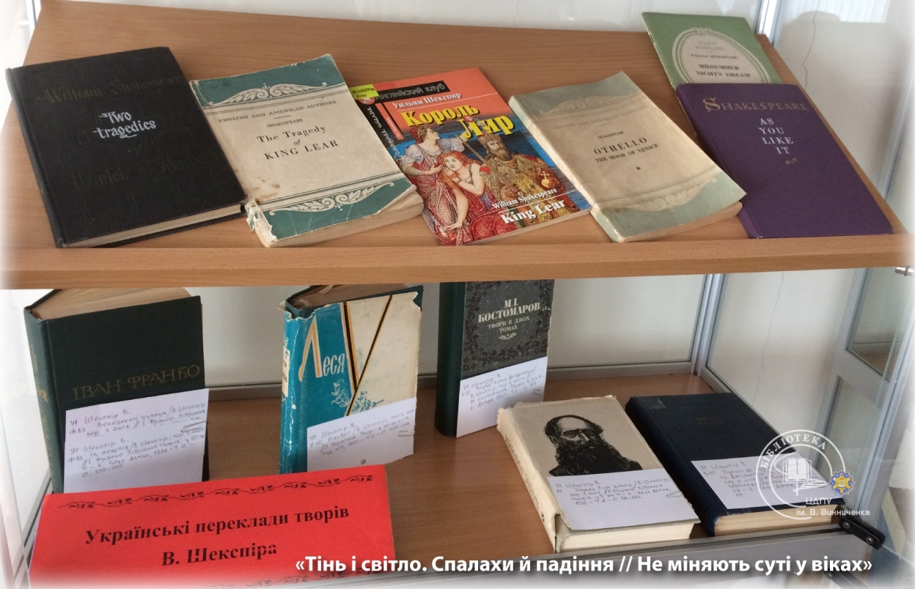 З нагоди проведення фіналу Всеукраїнського конкурсу читців сонетів В. Шекспіра в читальному залі для науковців з 17 квітня експонується велика книжкова виставка.