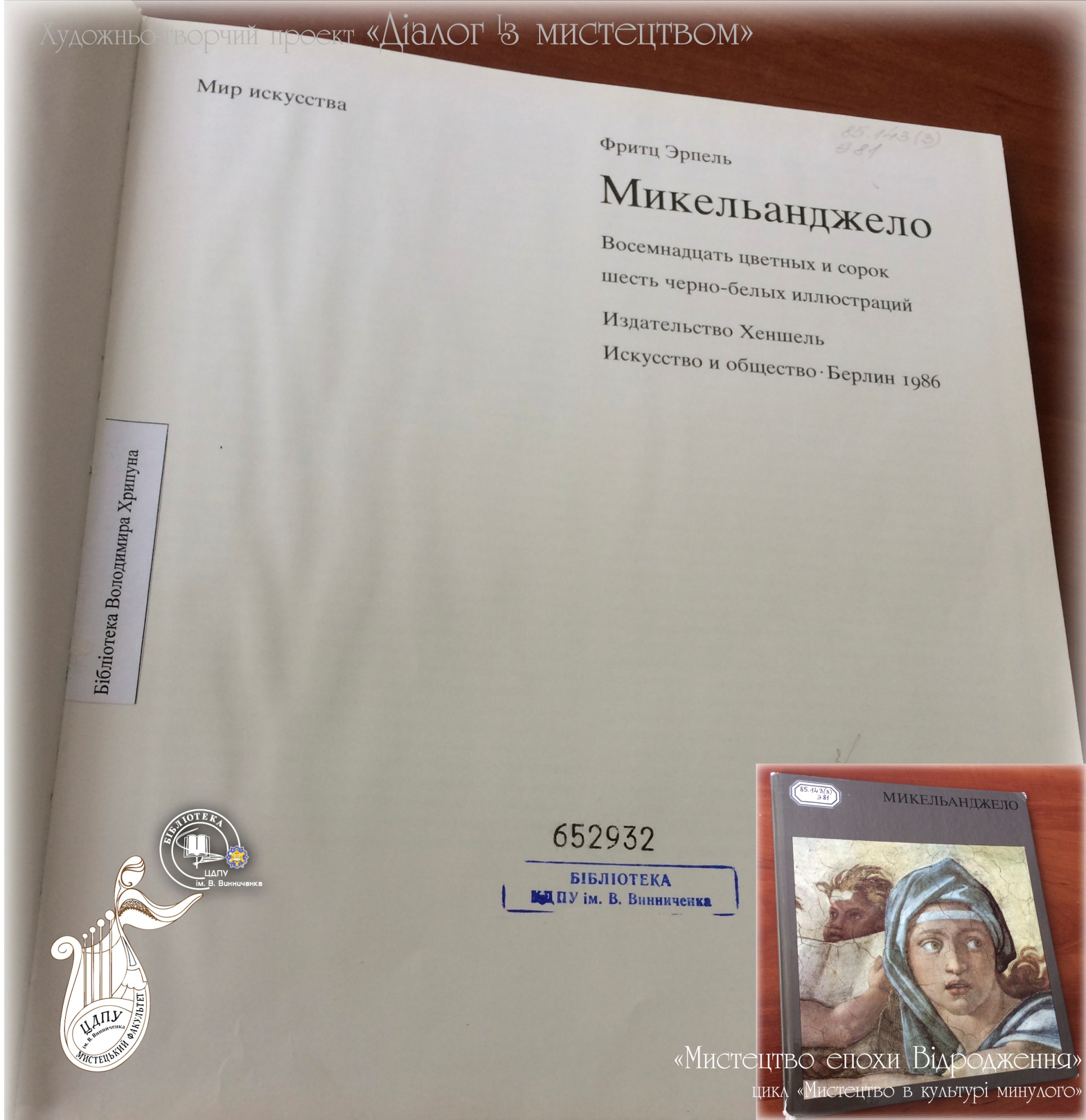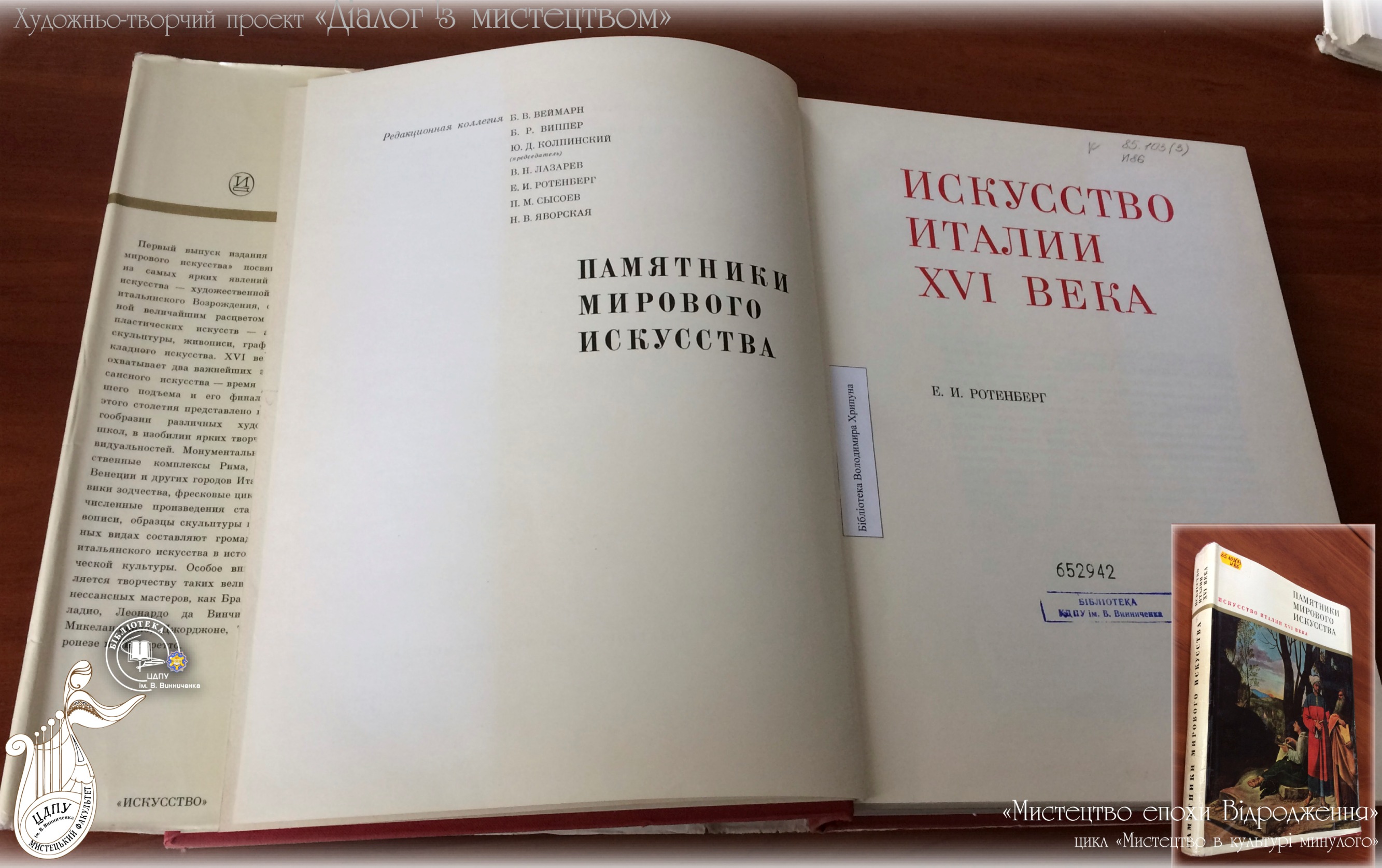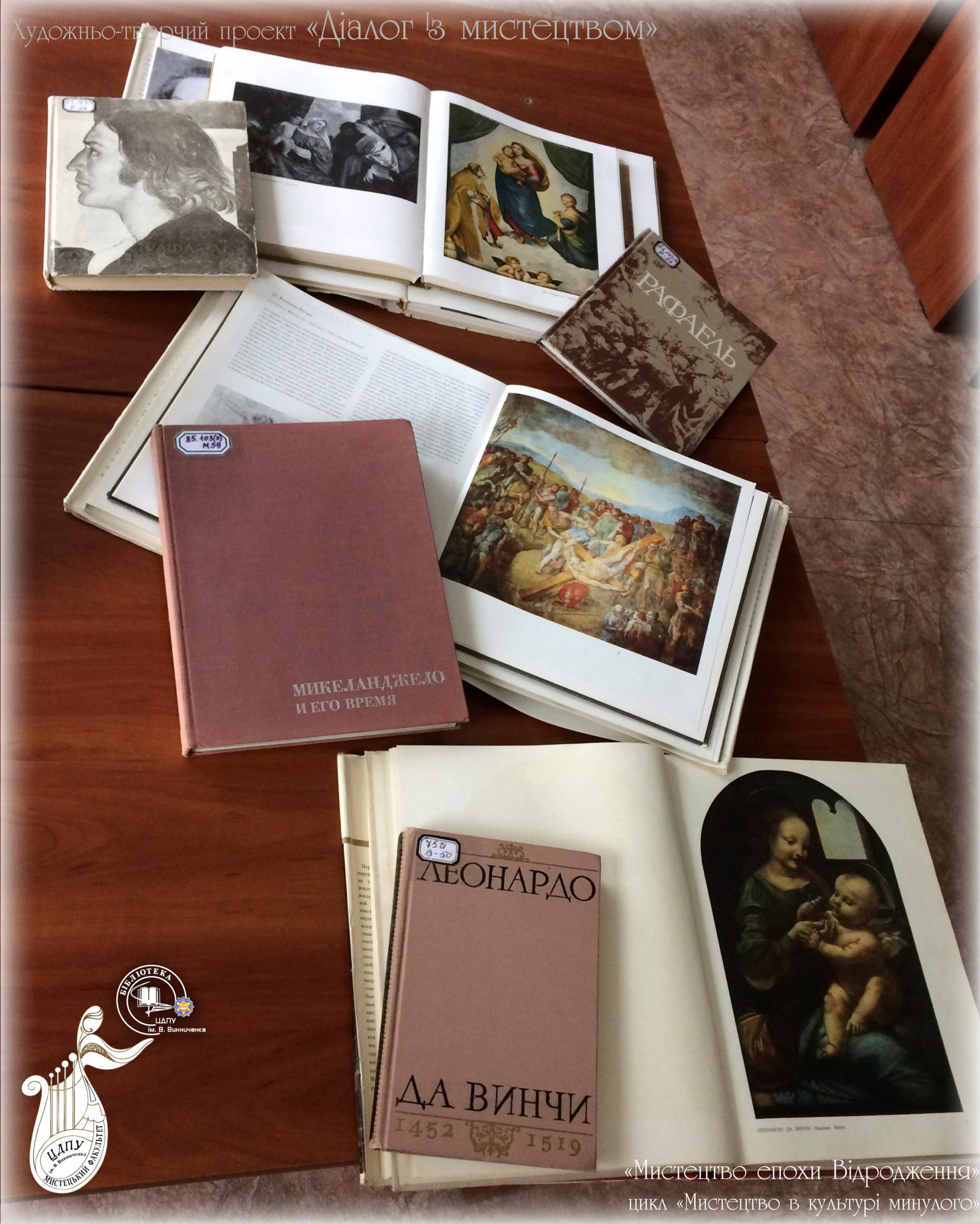 В межах циклу «Мистецтво в культурі минулого» універсальний читальний зал підготував виставку «Мистецтво епохи Відродження». Відродження, або Ренесанс – це перехідна епоха в історії культури Західної і Центральної Європи від Середньовіччя до Нового часу. Розпочалася вона в Італії у XIV столітті, в інших країнах – у XV, і тривала до кінця наступного століття. Епоха Відродження - це одна з найбільш цікавих і повноцінних епох в історії людства, синонім особистої свободи, досконалості у мистецтві, краси в житті, гармонії фізичних і духовних якостей людини. Термін «Відродження» першим почав вживати Джорджо Вазарі – італійський художник XVIстоліття, учень Мікеланджело і автор книги «Життєписи найзнаменитіших живописців, ваятелів і зодчих». Запрошуємо завітати до універсального читального залу і ознайомитися з роботами найвідоміших митців епохи.
