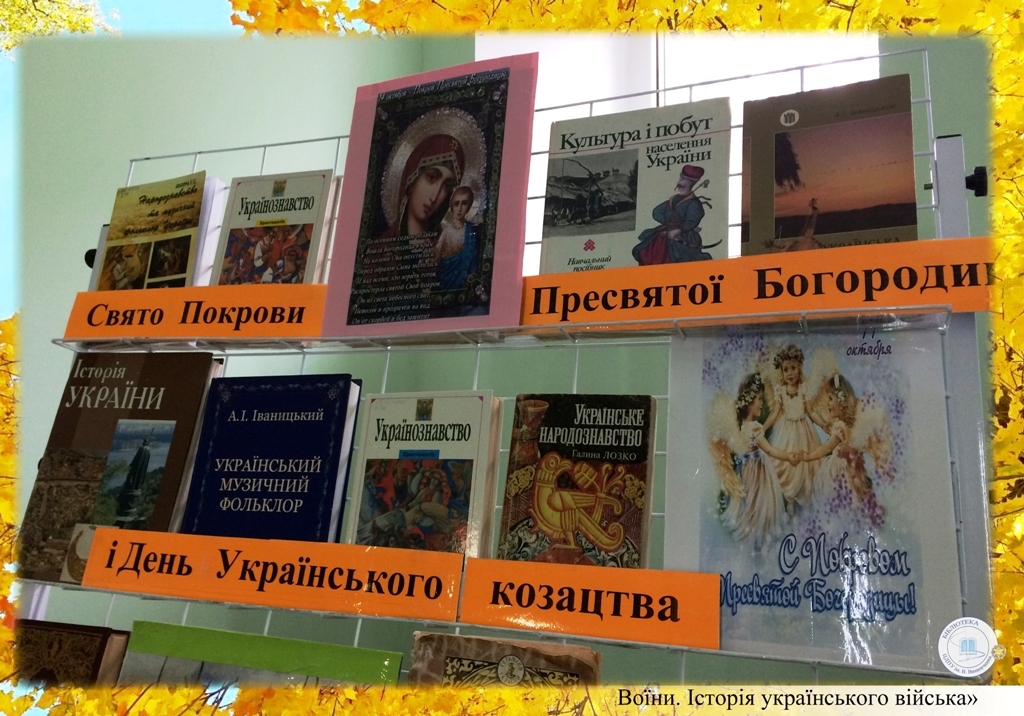 До Дня Покрови Пресвятої Богородиці, Дня Українського козацтва та Дня Захисника України універсальний читальний зал бібліотеки ЦДПУ ім.В.Винниченка запрошує всіх бажаючих відвідати ілюстровану книжну виставку «Воїни. Історія українського війська».