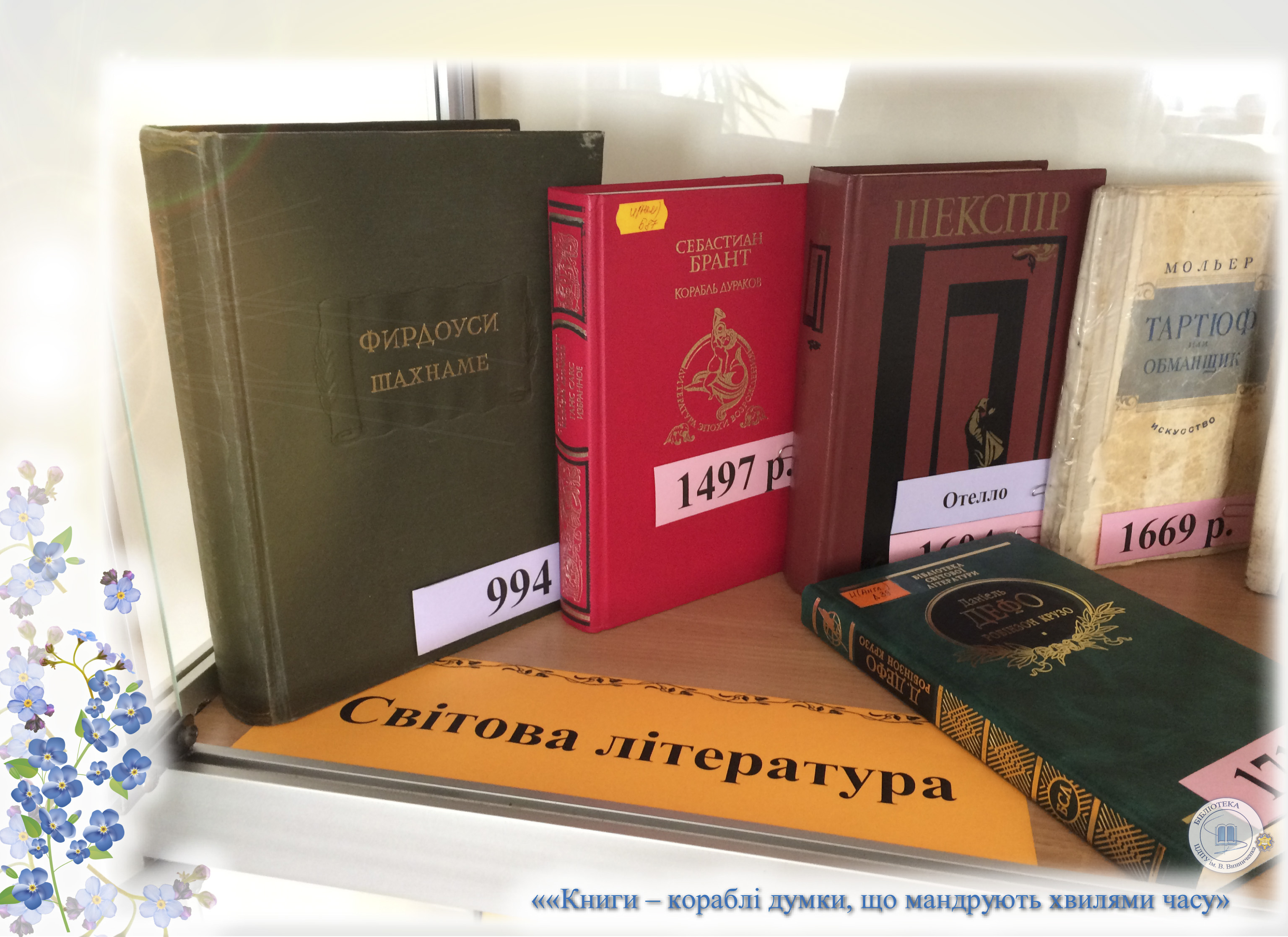 Експозицію складають шедеври української та світової художньої літератури Х-ХХІ століть. Серед них і ті твори, що увійшли до списку “улюблених і найкращих” мовою оригіналу та в перекладах.