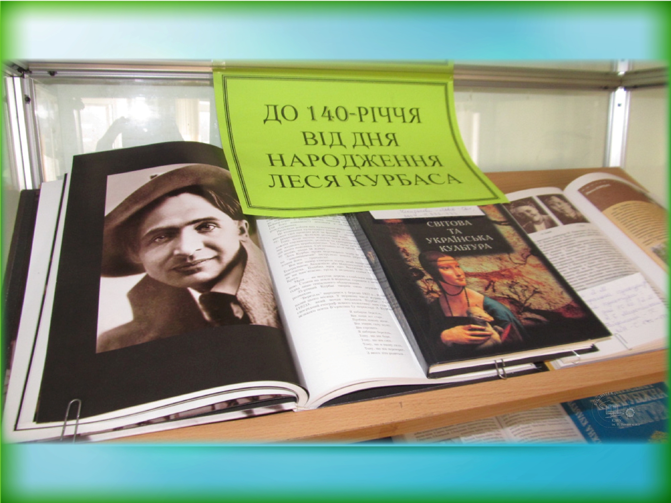 До Дня народження Леся Курбаса – українського режисера-реформатора, педагога, перекладача універсальний читальний зал презентує виставку «Березневий неспокій Чорноброва». Довідкові видання, книги з культорології, історії і мистецтвознавства висвітлюють життєвий та творчий шлях театрального митця, режисера, вихователя талановитої молоді, зірки світової величини. Наукові праці, статті розкривають розвиток та становлення українського театру 20-30-х років, зокрема проводиться акцент на театрах, створених Л. Курбасом: «Молодому театру», «Березолеві».