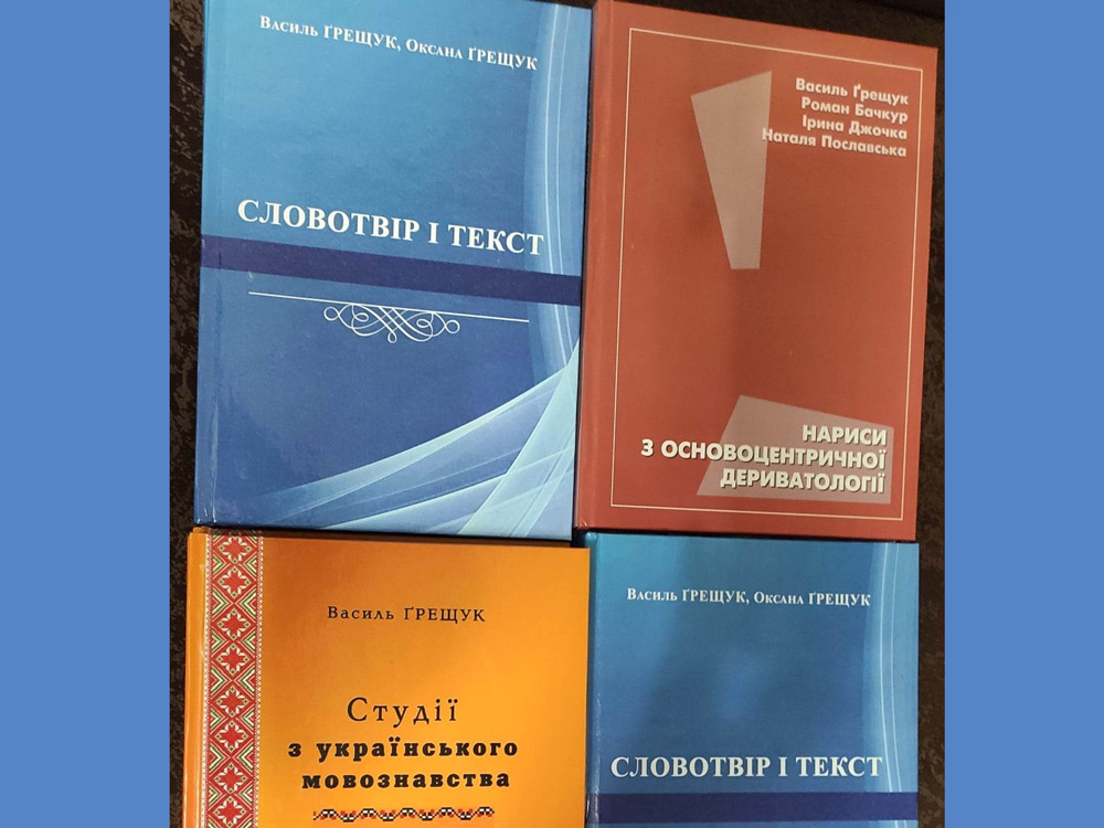 Завдяки тісній співпраці та творчим зв’язкам із кафедрою української мови Прикарпатського національного університету імені Василя Стефаника отримали в подарунок кілька праць від Василя Васильовича Ґрещука – знаного дериватолога, доктора філологічних наук, професора.