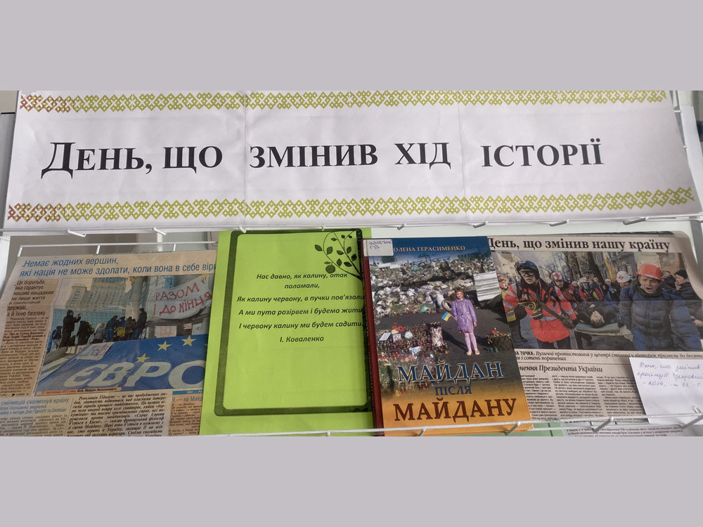 До Дня пам’яті Героїв Небесної Сотні зал суспільно-гуманітарних дисциплін підготував виставку «День, що змінив хід історії».