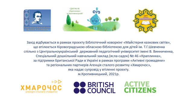 За сприяння Британської ради в Україні, авторки проєкту – працівника обласної дитячої бібліотеки ім. Т. Шевченка Маковей Маріанни, співорганізаторки проєкту – викладачки кафедри педагогіки дошкільної та початкової освіти Андросової Наталі та студентів факультету педагогіки та психології 23–24 лютого розпочалася активна фаза проєкту для дітей дошкільного і молодшого шкільного віку та родин «Коворкінг «Майстерня казкових світів».