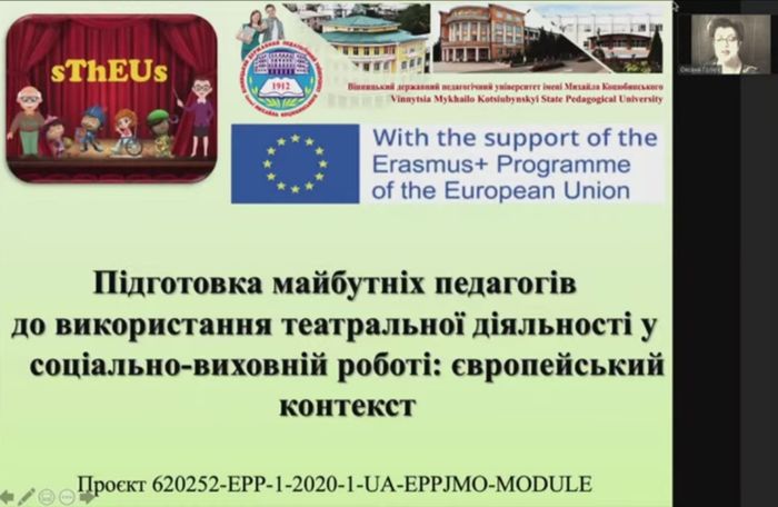 - напрям «Театральне мистецтво як засіб розвитку soft skills дітей у контексті досвіду країн ЄС та України (в рамках проєкту Еразмус+ Модуль Jean Vonnet 620252-EPP-1-2020-1-UA-EPPJMO-MODULE)» - викладач Андросова Н. М. з доповіддю на тему «Розвиток комунікативних навичок та емоційного інтелекту дітей засобами театрального мистецтва»;