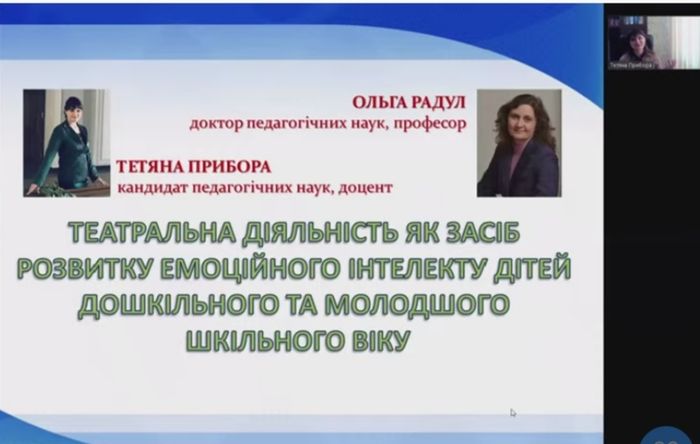Завідувач кафедри педагогіки дошкільної та початкової освіти д.п.н., професор Радул О. С. та к.п.н, доцент Прибора Т. О. виступили на пленарному засіданні з доповіддю «Театральна діяльність як засіб розвитку емоційного інтелекту дітей дошкільного та молодшого шкільного віку»