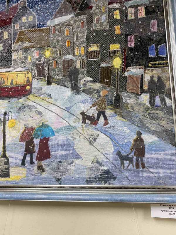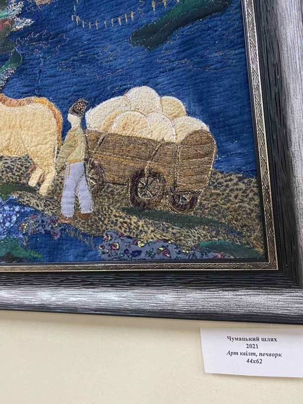 На виставці були представлені сюжетні та пейзажні картини у техніці печворк, ковдри й одяг.