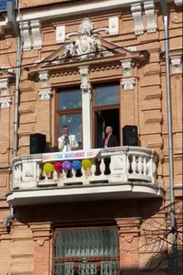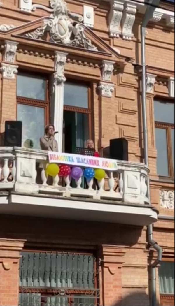 Неординарний початок свята у вигляді естрадного виконання популярних українських мелодій талановитими співаками - Народним артистом України Сергієм Дьоміним та студентами спеціальності 014.13 Середня освіта (Музичне мистецтво) на балконі бібліотеки викликав захоплення у відвідувачів міста та перехожих. "Видовищно й зі смаком!" - такі відгуки чули навколо!