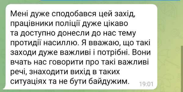 В рамках акції «16 днів проти насилля» серед студентів спеціальностей соціальна робота, психологія, початкова освіта та дошкільна освіта було проведено просвітницьку роботу на тему «Як реагувати на домашнє насильство, якщо ви стали його свідком». Звернули увагу на такі питання, як контакти допомоги, алгоритм дій під час домашнього насилля, а також ознаки, які можуть вказати на те, що людина / дитина зазнає домашнього насилля.