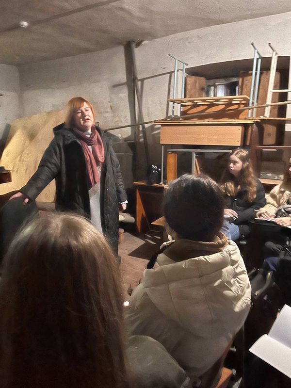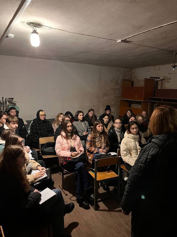 Зустріч відбувалася під час повітряної тривоги, тому студенти знаходилися в укритті, що сприяло створенню аутентичної атмосфери та налаштуванню майбутніх психологів-практиків на можливості роботи з клієнтом в ситуації невизначеності.