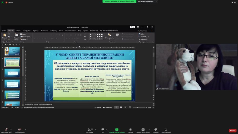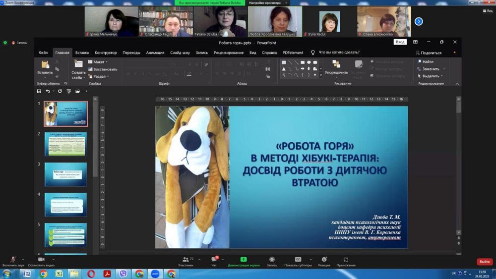 Творчу майстерню «Робота горя» в методі Хібукі-терапія: досвід роботи з дитячою втратою» провела кандидатка психологічних наук, доцентка кафедри психології Полтавського національного педагогічного університету імені В. Г. Короленка (м. Полтава, Україна) Дзюба Тетяна Михайлівна.