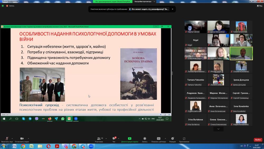 Виголосив доповідь «Traumatic events as a factor in maintaining the dynamic integrity of a person» та продемонстрував елементи майстер-класу доктор психологічних наук, професор Монтклерського університету (штат Нью-Джерсі, США) Лушин Павло Володимирович.