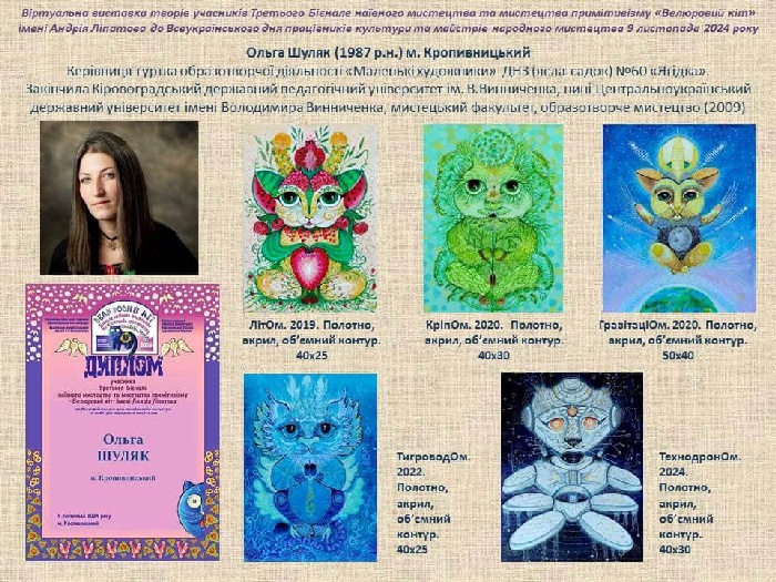 З нагоди Всеукраїнського дня працівників культури та майстрів народного мистецтва, що відзначався 9 листопада, художньо-меморіальний музей Олександра Осмьоркіна вже втретє влаштував бієнале наївного мистецтва та мистецтва примітивізму «Велюровий кіт» імені Андрія Ліпатова.