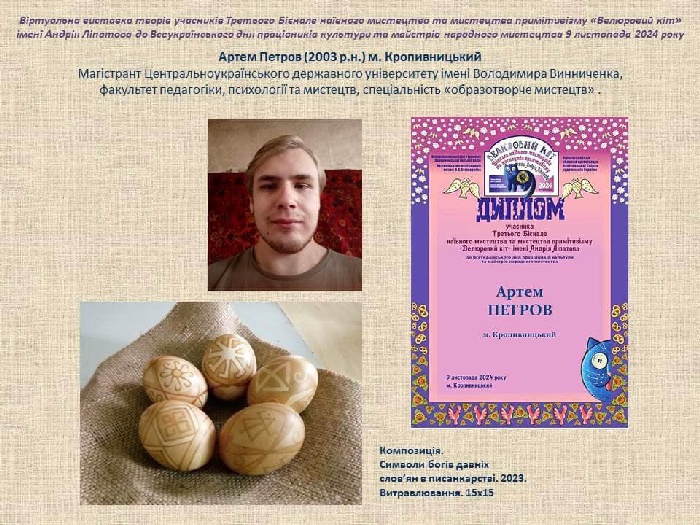 Викладачі, випускники та студенти факультету педагогіки, психології та мистецтв ЦДУ, майбутні майстри народної творчості, взяли участь у бієнале. Учасники отримали фотопрезентацію та дипломи.