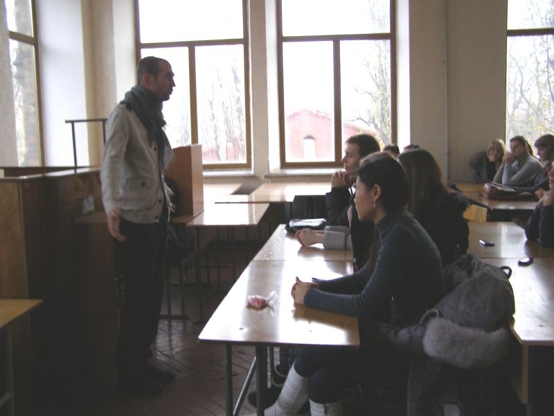 Лектор – соціальний працівник Кіровоградського обласного відділення ВБО «Всеукраїнської мережі ЛЖБ» Бочаров-Туз Володимир Володимирович. На лекції піднімалися питання важливості профілактичної роботи з проблеми СНІДу в Україні, причин ВІЛ/СНІДу, шляхів зараження, результативності медичного лікування, просвітницької роботи проти істерії та неосвіченості, проти дискримінації та суспільної ізоляції людей, що живуть з ВІЛ/СНІДом.