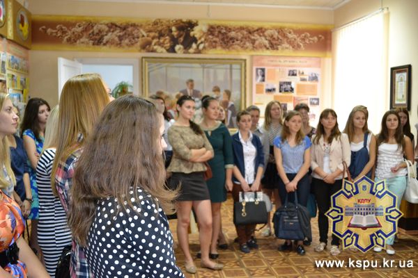 Після приїзду до с.м.т. Павлиш студенти вшанували пам’ять видатного педагога покладанням квітів до пам’ятника. Директор музею Ткаченко Зоя Юріївна ознайомила студентів з педагогічною частиною музею та розповіла про життєвий шлях і педагогічну діяльність педагога. Велике враження на відвідувачів справила меморіальна квартира Василя Олександровича з його величезною бібліотекою. Оглядаючи робочий кабінет вченого, студенти почули цікаву розповідь про роботу Сухомлинського як директора школи, який починав свій робочий день о 4-й годині ранку, працюючи над рукописами своїх статей та книжок. А о 8-й годині вже стояв на ганку школи, зустрічаючи дітей, котрі прийшли на заняття.