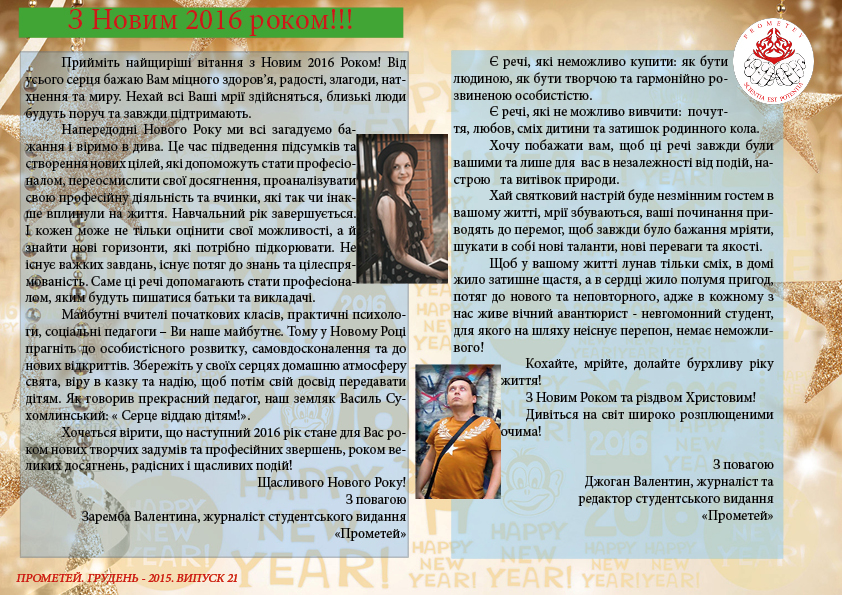 Привітання з Новим Роком. Колектив медіа-ресурса "Прометей"