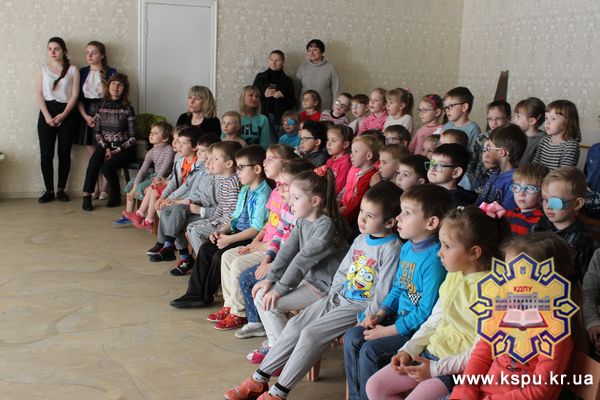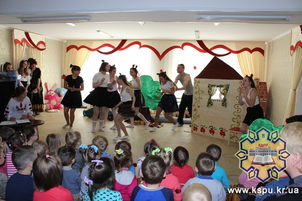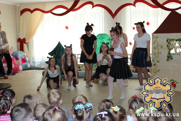 18 та 19 травня 21 група факультету педагогіки та психології, на чолі зі старшим викладачем Шараповою Тетяною Анатоліївною відвідала два дитсадка. Група виступала з двома казками: для наймолодших – «Вовк і семеро козенят», а для старших – «Котик та Півник». Студенти з великим задоволенням намагалися показати всі свої вміння, які здобули на таких предметах, як «Основи сценічного екранного мистецтва» та «Музичне мистецтво з основами хореографії».