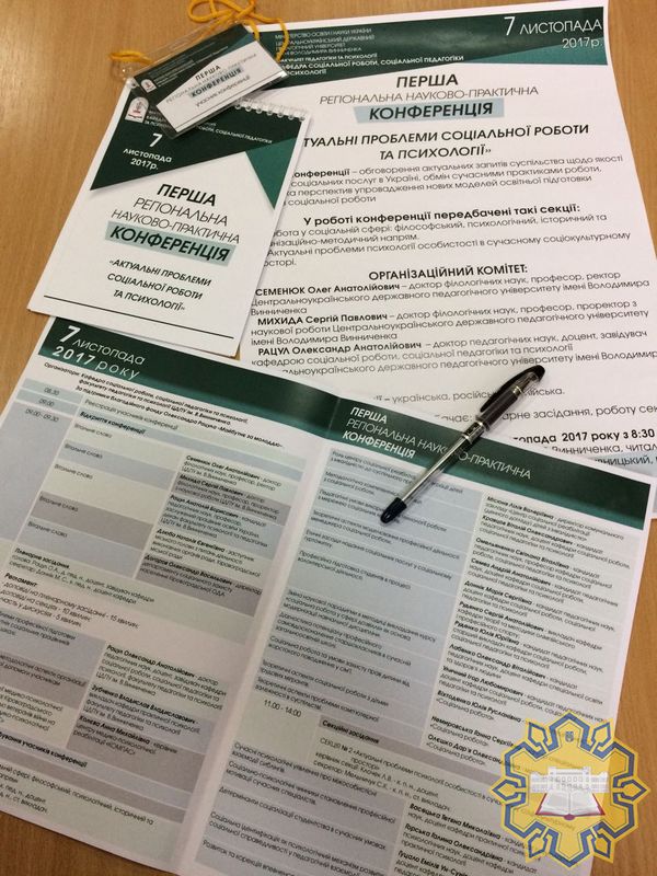 Кафедрою соціальної роботи, соціальної педагогіки та психології, факультетом педагогіки та психології ЦДПУ імені Володимира Винниченка було ініційовано та проведено Першу регіональну науково-практичну конференцію «Актуальні проблеми соціальної роботи та психології», яка відбулася 7 листопада 2017 року.