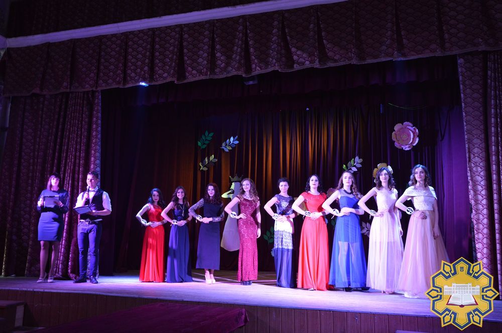 Конкурсна програма складалась із декількох етапів, а саме: візитна картка, дефіле в коктейльних сукнях, конкурс талантів, дефіле у вечірніх сукнях та інтелектуальний конкурс. Дівчата були неперевершені та показали, що наш факультет славиться не лише красунями, а й творчими талановитими інтелектуалками. Хотілось би детальніше розповісти про конкурс талантів, адже він був родзинкою програми, оскільки дівчата мали можливість обрати для спільного номеру свою суперницю. Так, Нинель Чижова та Тетяна Сагун запалювали серця глядачів своїм запальним танцем, Валерія Воротнюк показала свою акторську майстерність і до глибини душі вразила декламуванням вірша, далі Діана Шипокіна та Марина Чебан підкорили серця всіх присутніх у залі своїм танцем, Марина Матусова примусила публіку затамувати подих виконанням своєї пісні, Альона Чиж та Люба Артеменко показали своїм танцем як потрібно вчитися і наостанок Олексієнко Анастасія змусила публіку посміятися від душі.