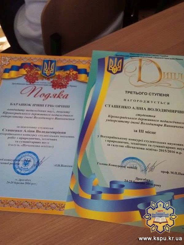 24-26 березня 2016 року в місті Дрогобичі Львівської області відбулася підсумкова науково-практична конференція ІІ етапу Всеукраїнського конкурсу студентських наукових робіт із природничих, технічних та гуманітарних наук. Призове ІІІ місце здобула студентка факультету педагогіки та психології . Науковий керівник – Баранюк Ірина Григорівна, доцент кафедри педагогіки дошкільної та початкової освіти. Враженнями від цієї конференції ділиться сама учасниця.