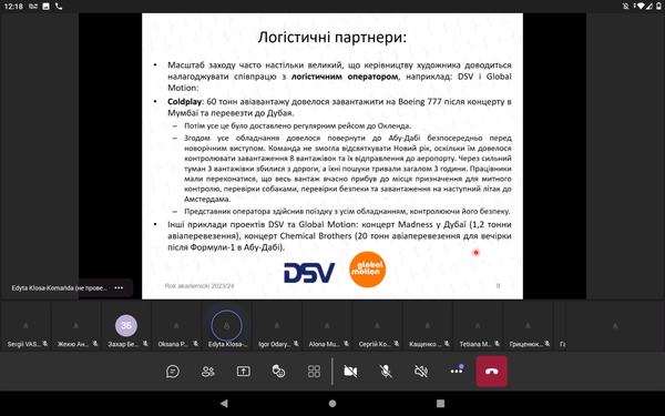 Лекцію на тему логістики та управління ланцюгами поставок провела д-р Едита Клоса-Команьда – доктор економічних наук, викладач WSZOP, фахівчиня у сфері логістики, міжнародна дослідниця та досвідчена тренерка з бізнес-консалтингу.