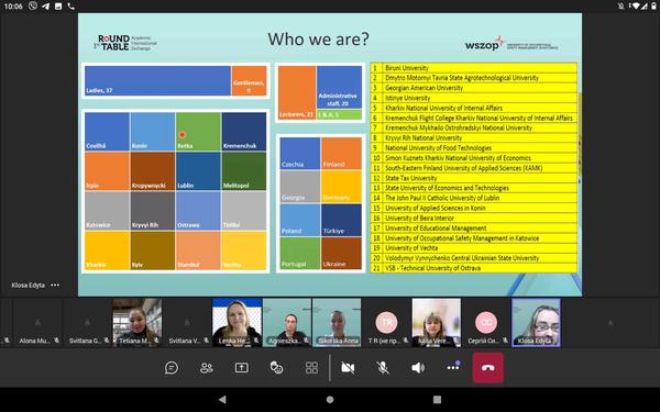22 жовтня 2025 року відбувся перший круглий стіл «Міжнародний академічний обмін», організований Університетом управління охороною праці в Катовіцах (WSZOP, Польща). Захід об’єднав представників українських та європейських закладів вищої освіти, які обговорили актуальні питання розвитку академічної мобільності та міжнародних освітніх проєктів.