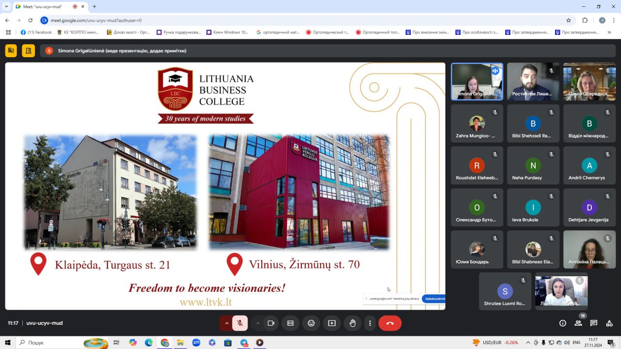 27 листопада 2024 року на базі Литовського коледжу бізнесу (Литва) пройшла міжнародна конференція на тему «Міжнародні можливості для студентів». Центральноукраїнський державний університет імені Володимира Винниченка став одним із учасників події.