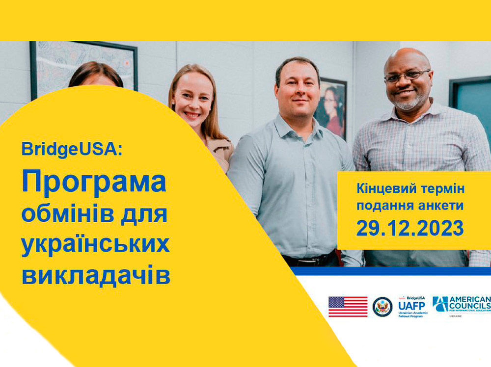 Державний департамент США, Бюро у справах освіти і культури, Офіс програм обміну приватного сектору та Американські Ради з міжнародної освіти раді оголосити про відкриття анкети для участі в програмі “BridgeUSA: Програма обміну для українських викладачів”.
