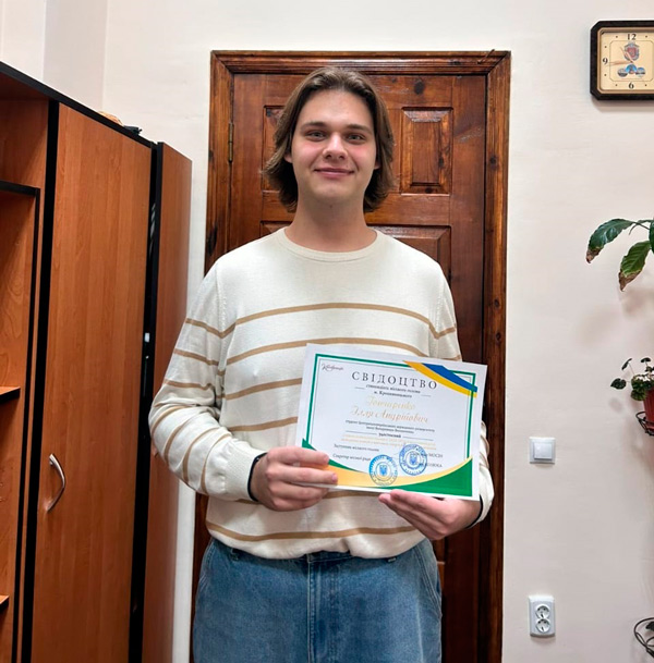 Студент спеціальності 014.03 Середня освіта (Історія, Правознавство) - стипендіат міського голови міста Кропивницького