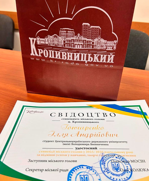 20 листопада 2025 року відбулося вручення свідоцтв стипендіатам міського голови міста Кропивницького на 2025-2026 н.р.