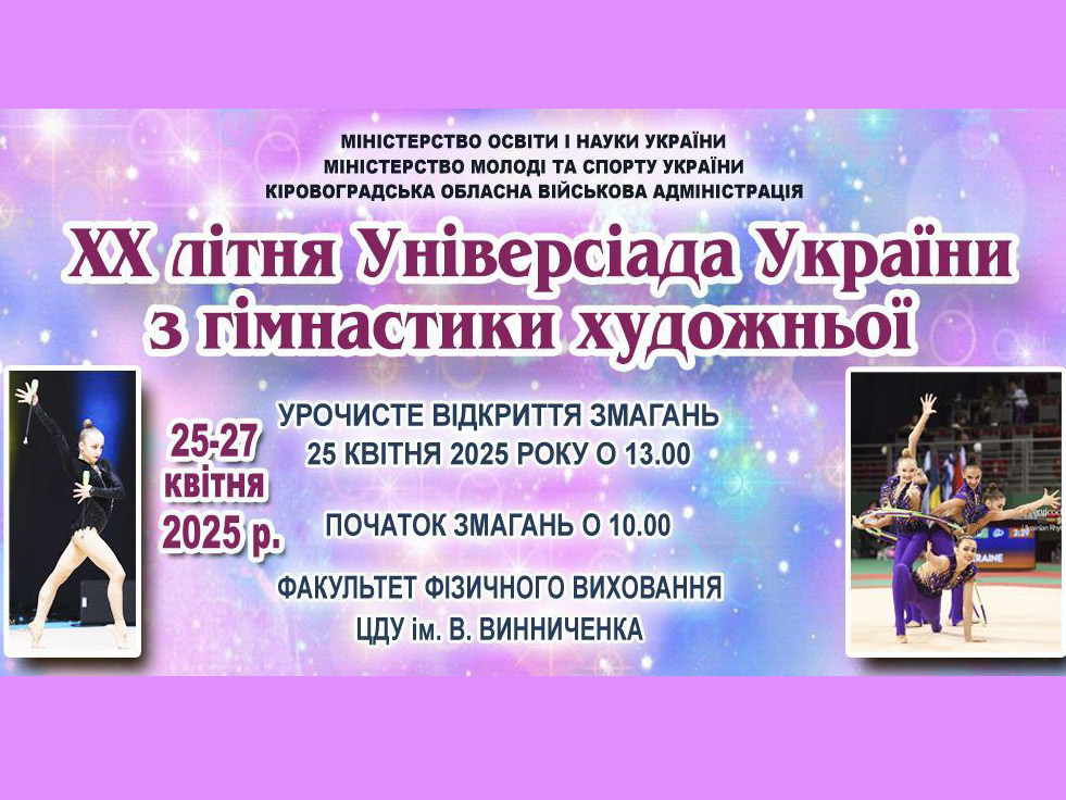 25-27 квітня 2025 року відбудеться XX літня Універсіада України з гімнастики художньої.