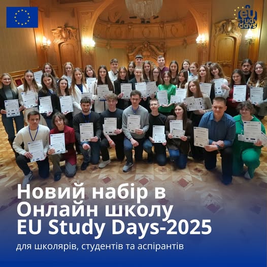 Представництво Європейського Союзу в Україні (European Union in Ukraine) оголошує набір школярів, студентів та аспірантів для участі в Онлайн школі EU Study Days-2025.