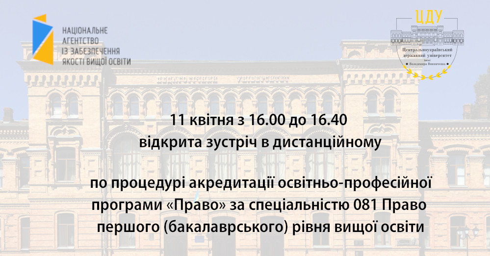 У 2022-2023 навчальному році ЦДУ ім. В. Винниченка проходить процедуру акредитації освітньо-професійної програми «Право» за спеціальністю 081 Право першого (бакалаврського) рівня вищої освіти.