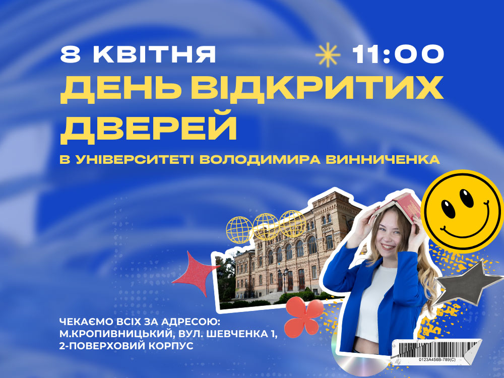 Центральноукраїнський державний університет імені Володимира Винниченка запрошує абітурієнтів та їх батьків на «День відкритих дверей – 2025». Це чудова нагода дізнатися більше про наш університет та перспективи майбутньої професії.