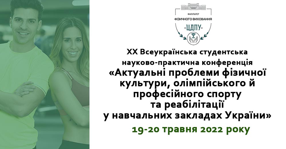 Запрошуємо Вас взяти участь у роботі ХХ Всеукраїнської студентської науково-практичної конференції «Актуальні проблеми фізичної культури, олімпійського й професійного спорту та реабілітації у навчальних закладах України», яка відбудеться 19-20 травня 2022 року. У роботі конференції планується участь здобувачів освіти навчальних закладів України.