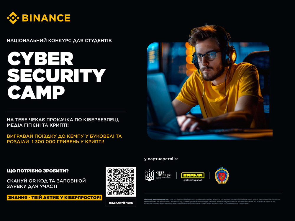 Департаментом кіберполіції Національної поліції України за сприяння Департаменту освіти, науки та спорту Міністерства внутрішніх справ України та за підтримки міжнародної криптовалютної біржі «Binance» заплановано проведення Всеукраїнського відкритого конкурсу Cyber Security Camp для здобувачів вищої освіти України.