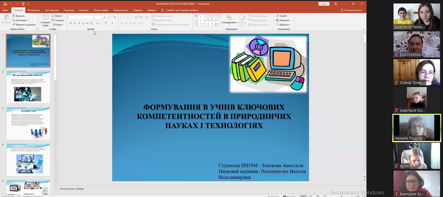- ЗАСТОСУВАННЯ ЗАСОБІВ ІНФОРМАЦІЙНО-КОМУНІКАЦІЙНИХ ТЕХНОЛОГІЙ В НАВЧАННІ ПРИРОДНИЧИХ ДИСЦИПЛІН Тихонова А.Є. – студентка-магістрантка, старший лаборант кафедри природничих наук та методик їхнього навчання. Науковий керівник – професор Подопригора Н.В.