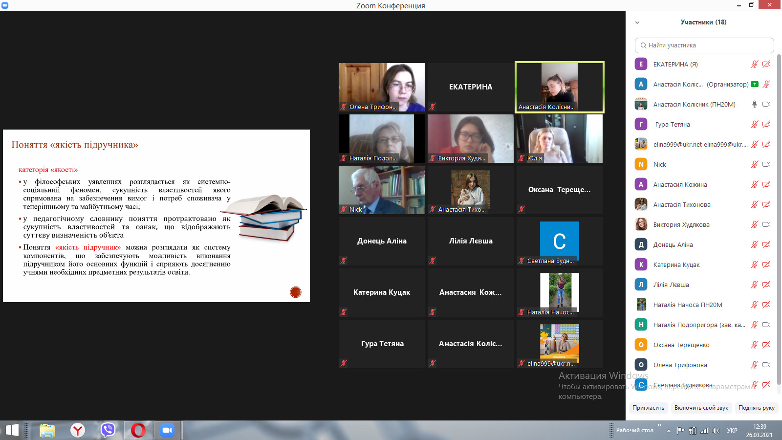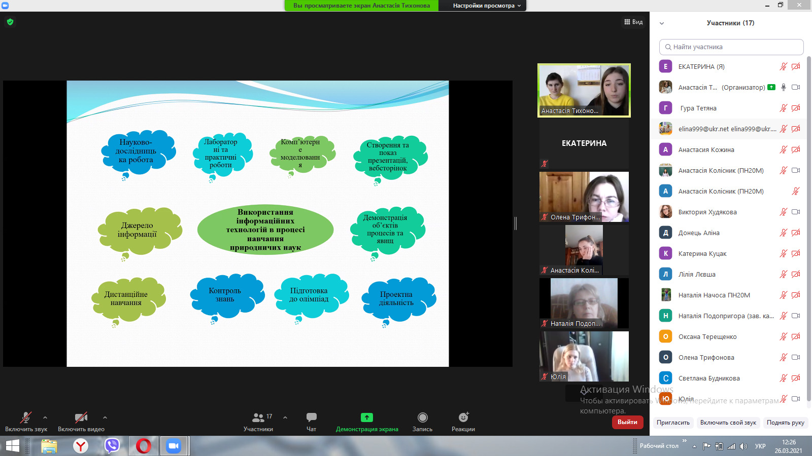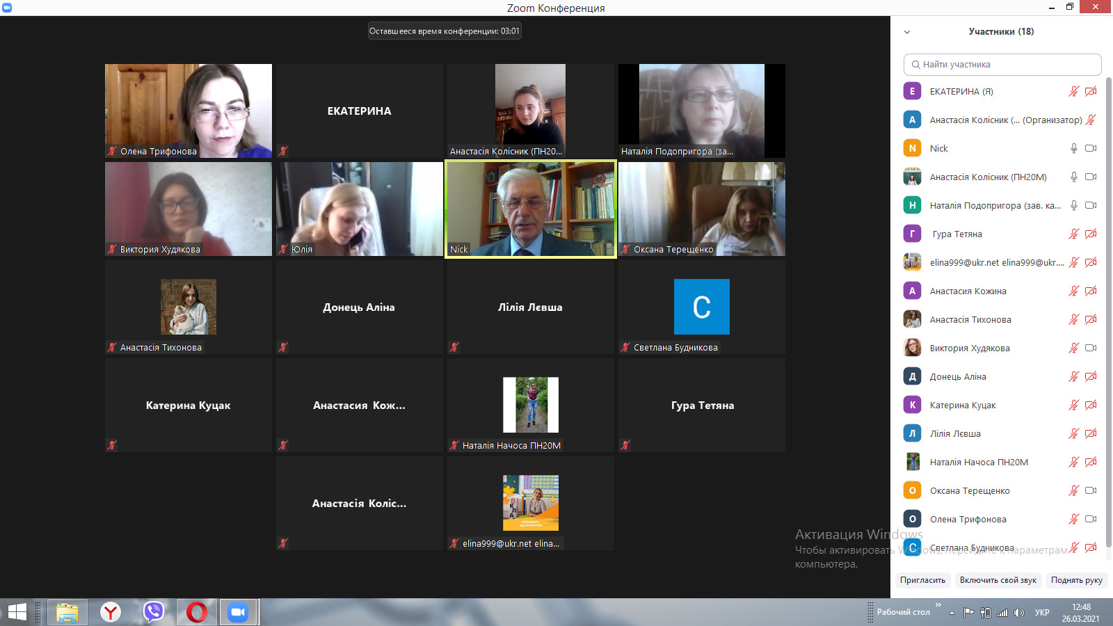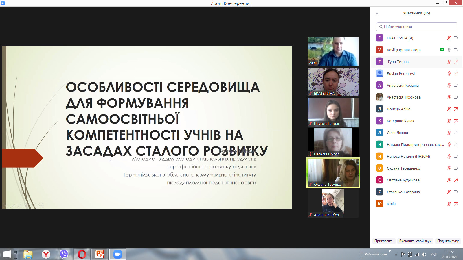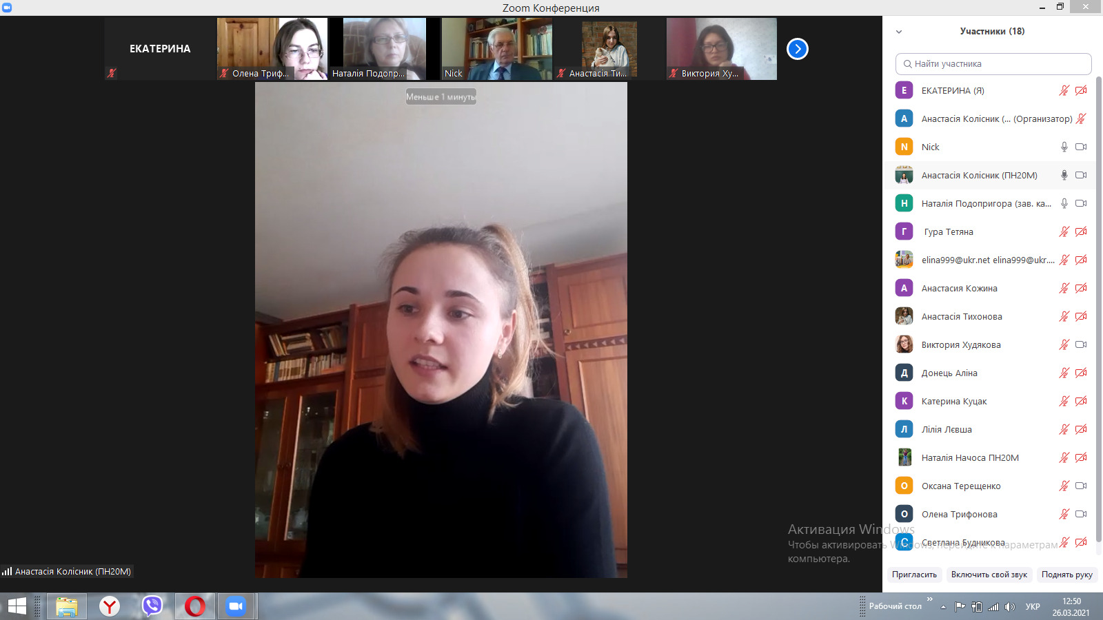 26.03.2021 в рамках III Всеукраїнської науково-практичної інтернет-конференції з міжнародною участю «Стратегії інноваційного розвитку природничих дисциплін: досвід, проблеми та перспективи», присвяченої 100-річчю із дня заснування Центральноукраїнського державного педагогічного університету імені Володимира Винниченка, відбулося секційне засідання за напрямом «Підготовка вчителів природничих дисциплін: європейський та вітчизняний досвід».