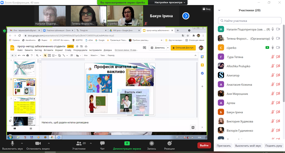 29 квітня 2021 року викладачі та студенти першого (бакалаврського) рівня вищої освіти спеціальності 014 Середня освіта (Хімія), 014 Середня освіта (Природничі науки) та 014 Середня освіта (Біологія) Центральноукраїнського державного педагогічного університету імені Володимира Винниченка відвідали лекцію в онлайн-форматі на тему: «Програмно-методичне забезпечення викладання шкільного курсу хімії (7-9 клас) в умовах модернізації національної системи освіти».