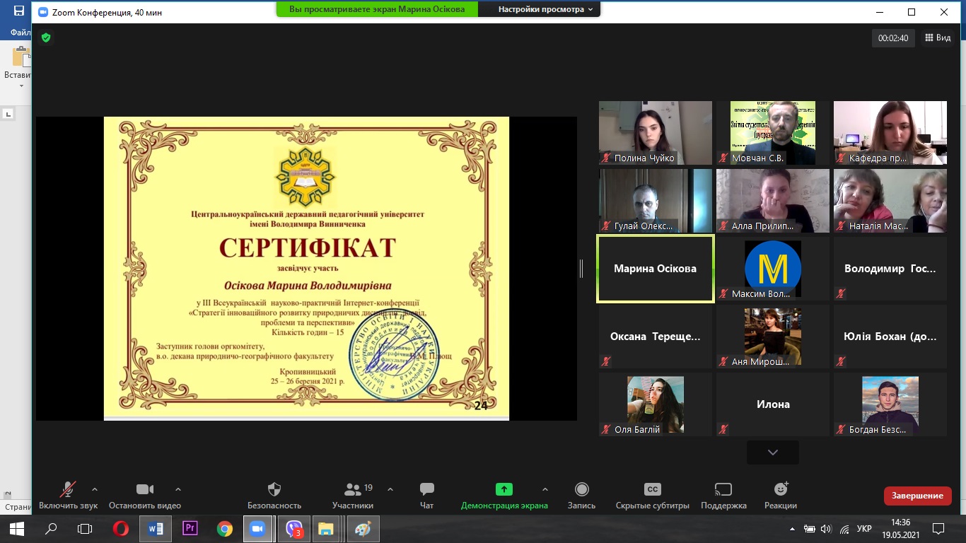 19 травня 2021 року на природничо-географічному факультету відбулася Звітна наукова студентська конференція, яка була приурочена до Дня науки в Центральноукраїнському державному педагогічному університеті імені Володимира Винниченка.
