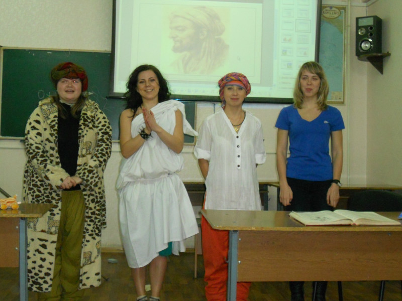 Всі студенти були поділені на 5 груп відповідно епохам історичного розвитку: «Первісні уявлення. Стародавня Греція», капітан команди – Буртова Інна, учасники: Вадан Н., Каліцун О., Дулхеску А., Данілова В.; «Стародавній Рим. Середньовіччя», капітан команди – Комар Ольга, учасники: Гайдук Ю., Клименко А., Черкасова Ю.; «Епоха Відродження», капітан команди – Ткач Ілона, учасники: Шуліка С., Феценець Б., Кручковська Д.; «ХІХ століття», капітан команди – Бондаренко Роман, учасники: Королюк В., Мажар О., Параниця О.; «ХХ століття», капітан команди – Хлєбнікова Ольга, учасники: Підвальна А., Калмикова І., Бакала М., Чернюк І.