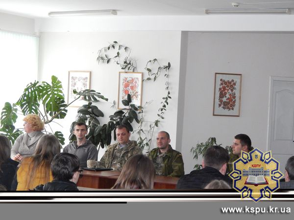 Шокуючими для пересічної людини були відповіді Олександра Марченка про вагу спорядження, яке носить на собі солдат, про те, що справжньому десантнику абсолютно байдуже в яких умовах він знаходиться і чи є в нього їжа, головне виконати бойове завдання. Вкотре зал зірвався оплесками після фрази Олександра «Моїми найкращими друзями є дружина та донька!». Вразила відповідь Руслана Вєлкова та інших хлопців про те, як змінюються погляди і свідомість солдата після перебування на лінії фронту, про те, що матеріальні цінності перестають бути цінностями, взагалі, про те, що найголовніша цінність солдата - сім′я та Батьківщина. Підбадьорила першокурсників відповідь студента 55 групи, Крещенка Захара, про те, що навіть двійка, отримана на парах сприймається зараз зовсім по- іншому. Тепер наші першокурсники знають, що навчаються разом із Захаром - гордістю нашого факультету, який з перших днів перебував в зоні АТО, прикриваючи у складі артилерії Донецький аеропорт. В кінці лютого 2014 року йому прийшла повістка… Захар залишив сім’ю (дружину, трьохмісячного сина і трьохрічну доньку)таі пішов воювати, а під час тимчасових вихідних приїжджав на факультет, щоб продовжувати навчання, здати контрольні, заліки та екзамени.