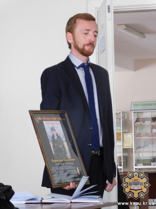 У залі не вистачало двох осіб, портрети яких принесли з вобою ведучі – це студенти природничо-географічного факультету, солдати, що з перших днів перебували на передовій, наші Герої, які загинули. Вони до останнього подиху захищали нашу свободу це– Бузуляк Анатолій Віталійович та Марков Іван Анатолійович. Присутні вшанували загиблих хвилиною мовчання...