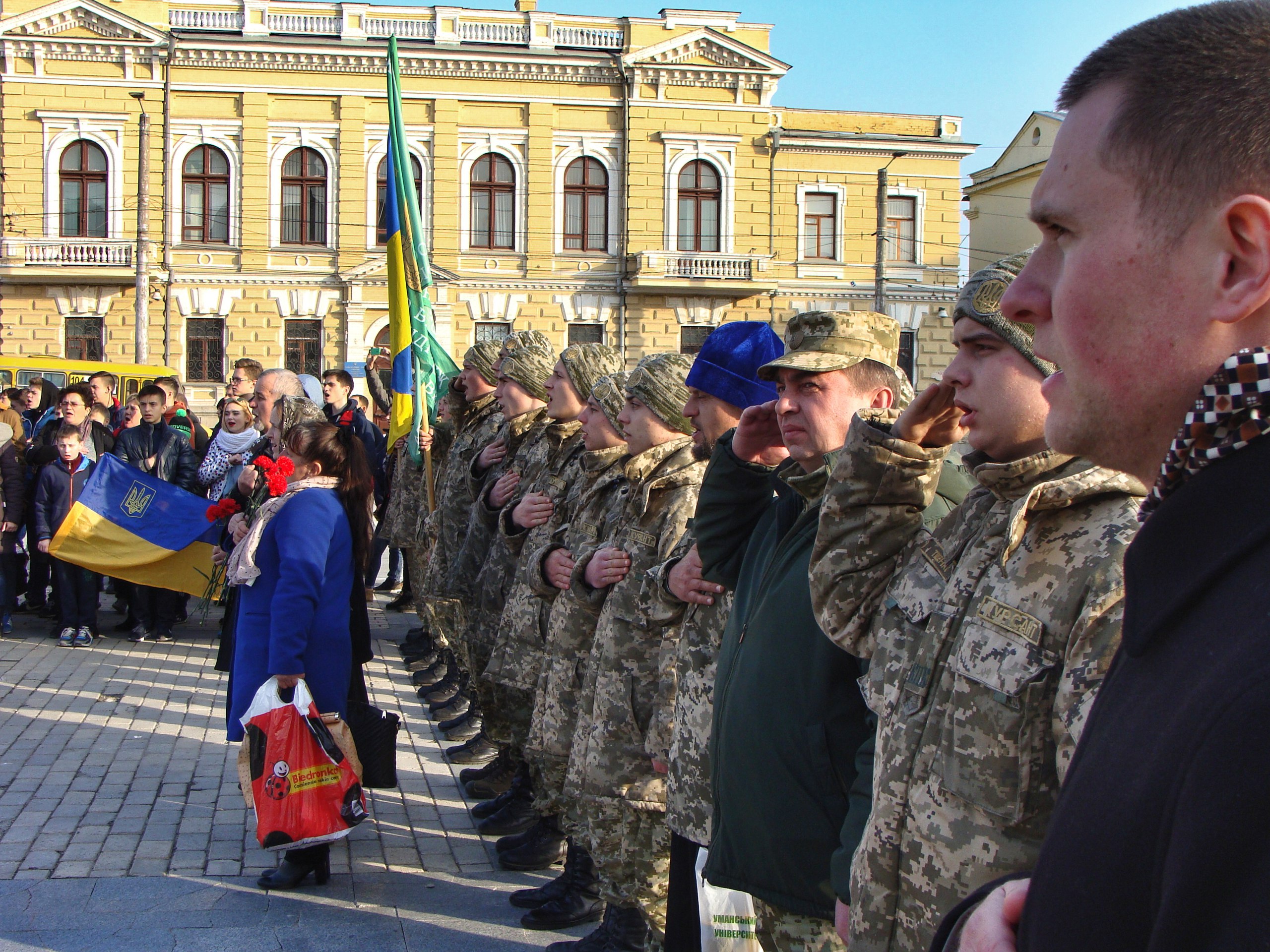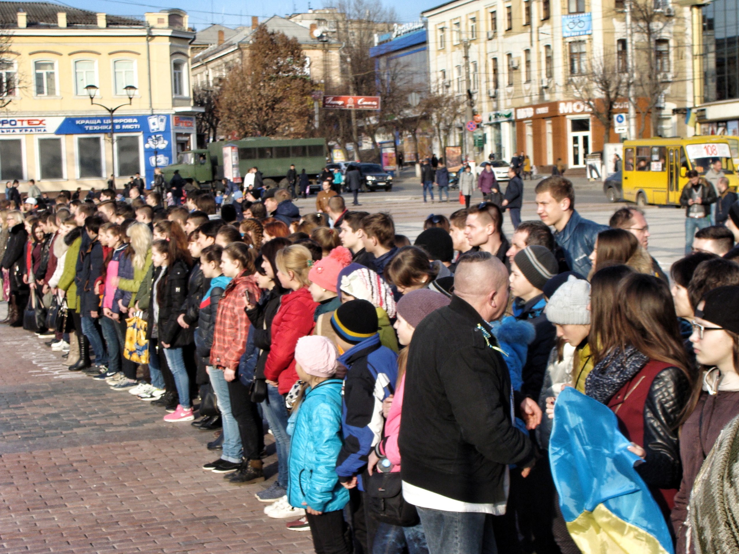15 березня, жителі міста Кропивницький зустрічали символічний потяг Єднання України «Труханівська Cіч». Потяг зі студентами, учнями, волонтерами мандрує містами України впродовж 16 днів, щоб ознайомитися з історією, відвідати культурно-освітні заходи, цікаві зустрічі та віддати шану героям Небесної Сотні і вшанувати загиблих на Сході військових.