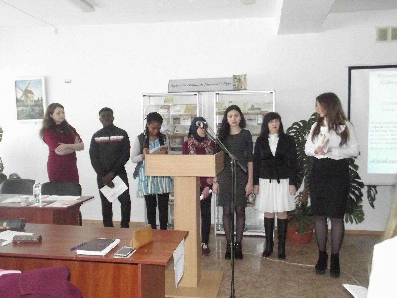 Родзинкою заходу став спільний виступ студентів першого курсу міжнародного факультету Донецького національного медичного університету та викладачів кафедри біології та методики її викладання. Доповідали Махмудова Жасміна Абдурахмон Кизи (Узбекистан), Елшаараві Асмаа Мохамед Махмуд (Єгипет), Севорну Джордж (Гана), Бенглієл Юніс Вуліміга (Гана) за темою: «Особливості навчання біологічних дисциплін в країнах Азії та Африки». Діалог зі студентами вели та перекладали на англійську та російську мову Казначєєва Марія Сергіївна, Дефорж Ганна Володимирівна та Коваль Світлана Юріївна. Іноземні студенти поділилися з гостями та нашими студентами чому саме вони обрали навчання в Україні, назвали переваги медичної освіти в Україні.