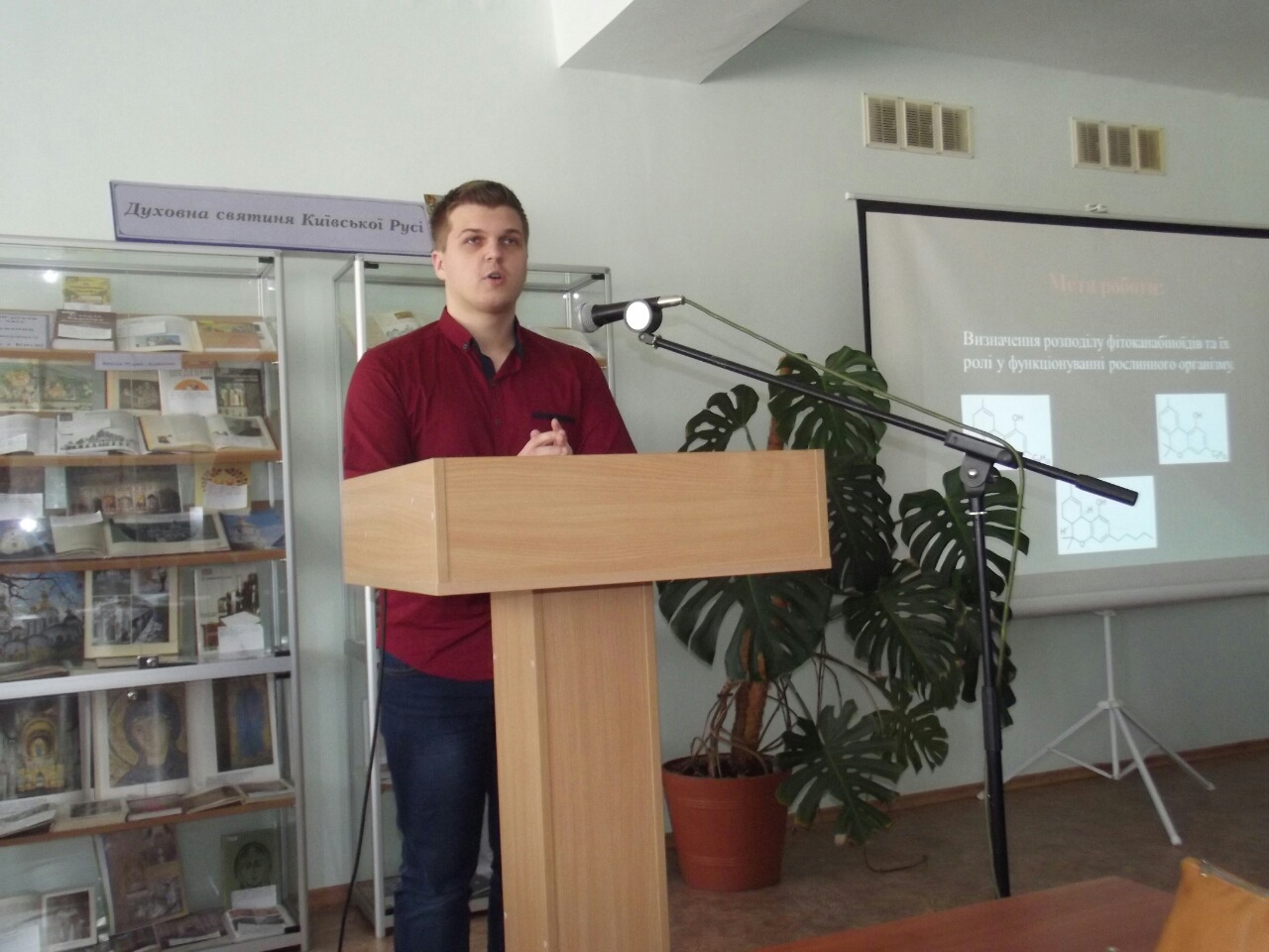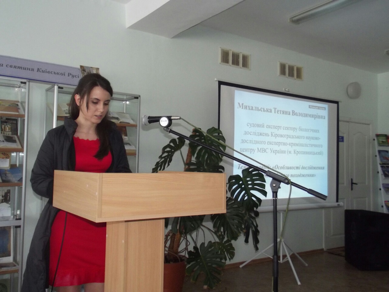 На пленарному засіданні виступали: Сільченко Юлія Юріївна (начальник-науково дослідної частини, секретар ради молодих вчених, кандидат географічних наук, старший викладач кафедри географії та геоекології Кіровоградського державного педагогічного університету імені Володимира Винниченка) за темою «Інформаційні ресурси сучасного вченого», Калініченко Надія Андріївна (завідувач кафедри біології та методики її викладання Кіровоградського державного педагогічного університету імені Володимира Винниченка, Заслужений вчитель України, доктор педагогічних наук, професор) за темою «Формування професійної компетентності майбутнього вчителя біології у процесі дослідницької роботи», Хлань Людмила Миколаївна (завідувач науково-методичної лабораторії природничо-математичних дисциплін комунального закладу “Кіровоградський обласний інститут післядипломної педагогічної освіти імені Василя Сухомлинського”) за темою «Формування професійних компетентностей учителів освітньої галузі «Природознавство» засобами науково-методичної роботи», Соколовська Ірина Миколаївна (кандидат сільськогосподарських наук, доцент завідувач лабораторії маркетингу, економічного аналізу та захисту інтелектуальної власності Кіровоградської державної сільськогосподарської дослідної станції Національної академії аграрних наук України) за темою «Науково-інноваційне забезпечення агропромислового виробництва Центрального регіону», Наняк Юрій Миколайович (завідувач відділу біологічних досліджень Вінницького науково-дослідного експертно-криміналістичного центру МВС України, м. Вінниця) за темою: «Виявлення, вилучення, фіксація, пакування запахових слідів», Цуркан Катерина Леонідівна (асистент кафедри анатомії людини №2, Донецький національний медичний університет, м. Кропивницький) за темою «Вимоги і виклики сьогодення: реформування медичної галузі і нові вимоги до навчання майбутнього лікаря», Куслій Юрій Юрійович (заступник директора Вінницького науково-дослідного експертно-криміналістичного центру МВС України, м. Вінниця) за темою: «Молекулярно-генетичне дослідження об’єктів біологічного походження», Михальська Тетяна Володимирівна (судовий експерт сектору біологічних досліджень Кіровоградського науково-дослідного експертно-криміналістичного центру МВС України) за темою «Особливості дослідження слідів біологічного походження», Краснюк Олег Юрійович (аспірант кафедри екології та охорони навколишнього середовища Центральноукраїнського національного технічного університету) за темою «Дослідження стану гідробіонтів Кременчуцького водосховища». Окрему цікавість викликали доповіді студентів природничо-географічного факультету (Корнєєва Тетяна Ігорівна, Янкович Андрій Едуардович та Іващенко Богдан Ігорович), щодо останніх наукових біологічних досліджень.
